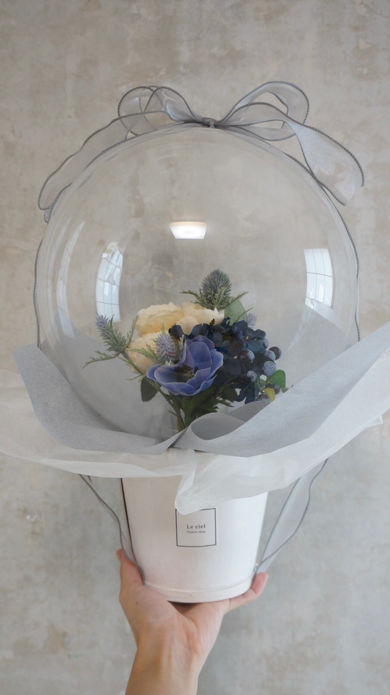 造花が入ったバルーンフラワーになります。