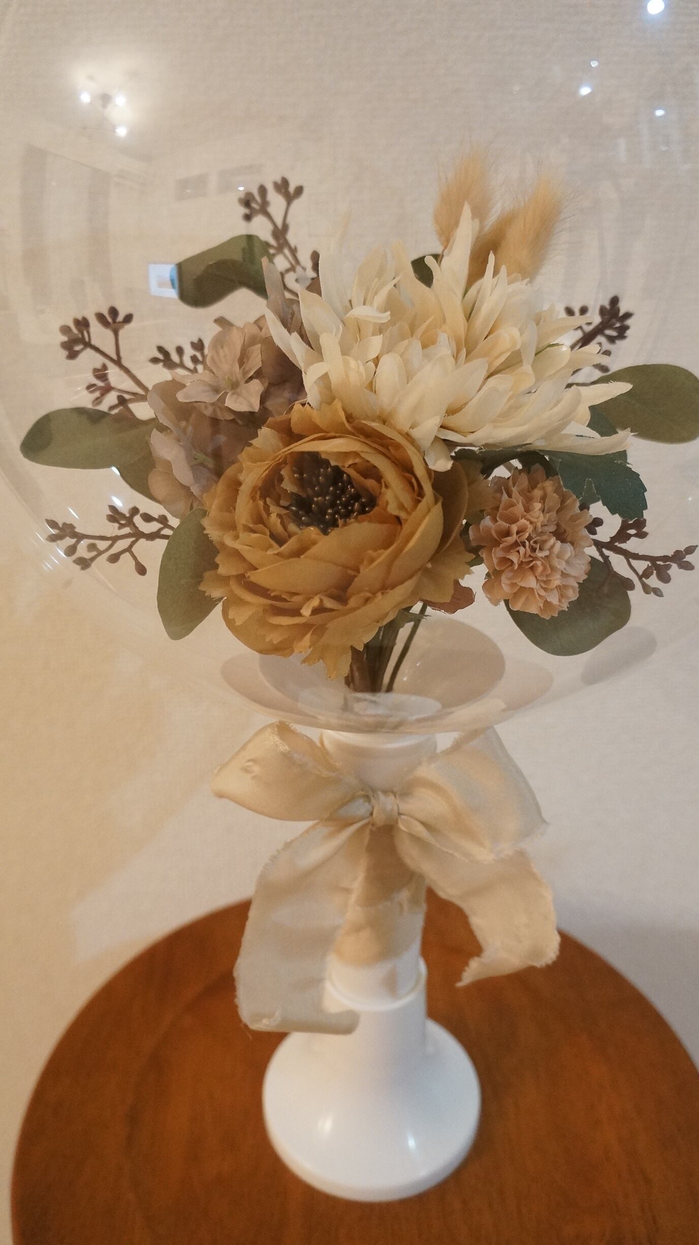 バルーンがしぼんだ後でも、中のお花だけで飾っていただけます^^