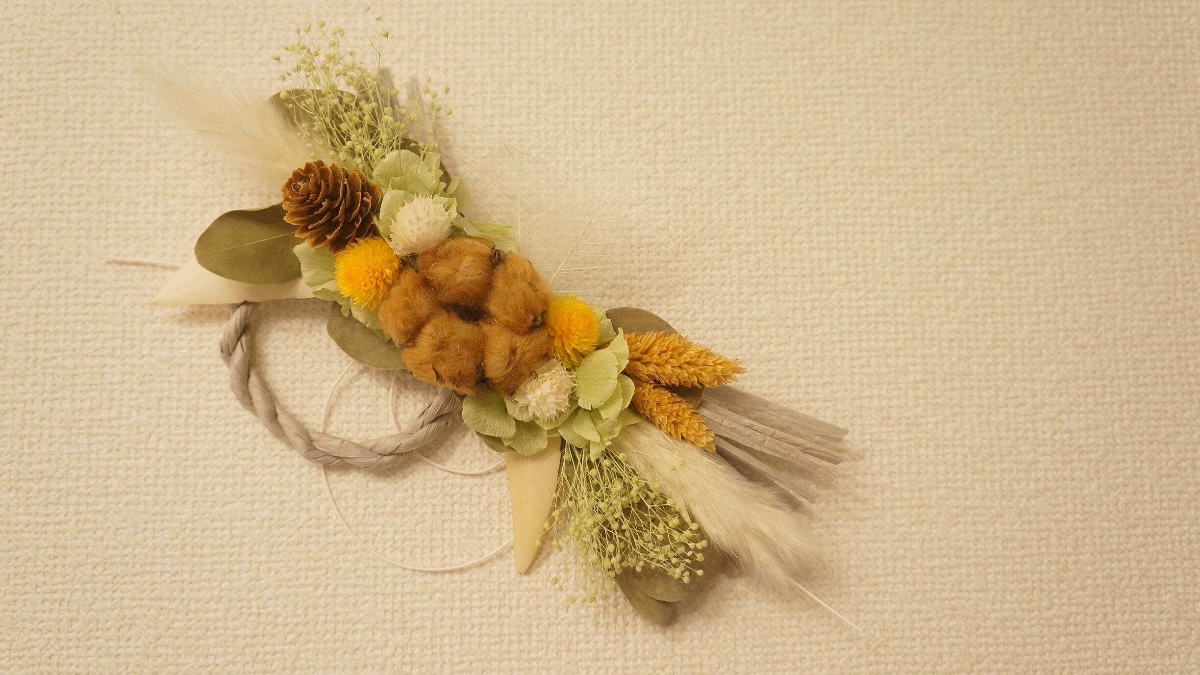 ドライフラワー、プリザーブドフラワーを使ったしめ縄になります。