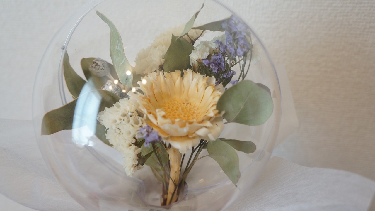 割れないアクリルバルーンフラワー(ドライフラワー)です。