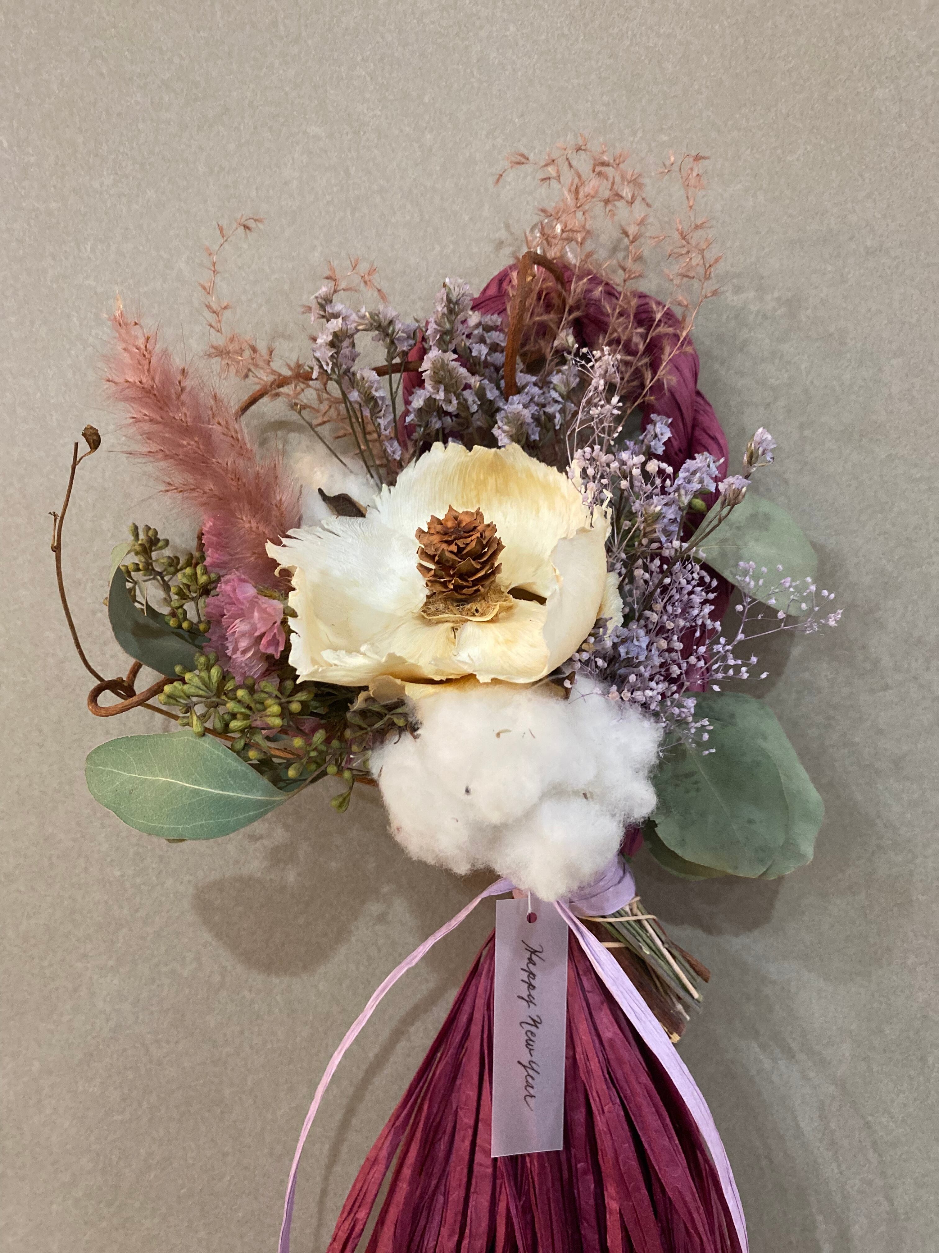 しめ縄からブーケの取り外し可能なので、お正月終わってからもブーケだけ飾っていただけます。
