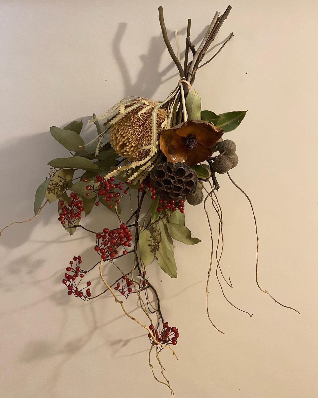 ドライフラワーのスワッグです。